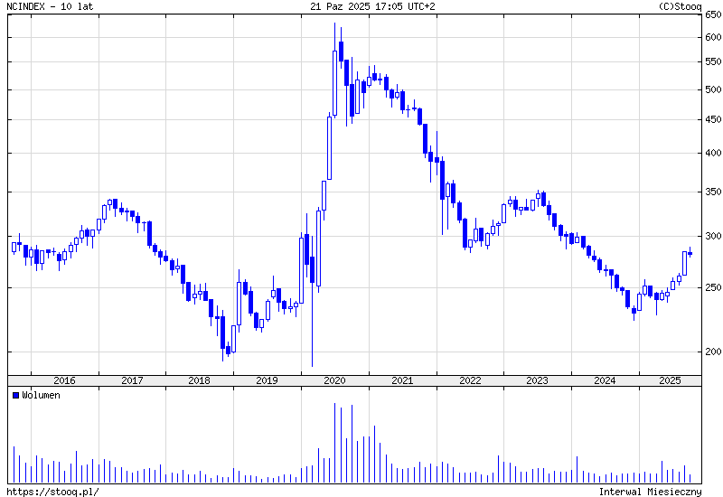 I co dalej? No nie wygląda to ciekawie. Tutaj stooq.pl/q/a/?s=c_&i=w&... taka szybka analiza nieważonego indeksu cenowego szerokiego rynku w interwale tygodniowym, który pokazuje ogólny sentyment na naszej giełdzie. 1. Od września 2002r indeks znajduje się w długo trwającym trendzie wzrostowym. 2. Od kwietnia 2013r wykres indeksu przykleił się do linii tego trendu , co odbyło się na poziomie 76,4% jego zniesienia wg. fibo. od szczytu z lipca 2007r. i kolejnie wykorzystując go dwukrotnie jako linię wsparcia. 3. Wg. Eliota można by spekulować, że w momencie wyznaczenia tego wspomnianego trendu, to pierwsze wsparcie, po wyznaczeniu wcześniej fal A-B-C zainicjowało powstanie kolejnych fal 1 i 2, a po kolejnym wsparciu na wspomnianym wcześniej trendzie falę 3, która prawdopodobnie nie została jeszcze zakończona. Ten ruch wzrostowy na rysunku oznaczony jest jako linia T1. 4.Aktualnie sytacja jest taka, że sentyment jest mocno spadkowy co obrazuje kolejna czarna świeczka. Wygląda na to, że najbliższe wsparcie znajduje się właśnie na lini obowiązującego od 2002r. trendu. Oceniając proporcje na wykresie (w interwale tygodniowym) oczekiwać należy jeszcze ok. 2-3 tygodni spadków. 5.Gdyby te wsparcie pękło, to kolejne należy oczekiwać na poziomie linii T2 wyznaczonej przez dołki z XII-2013/VIII-2014/XII-2014. Oba prognozowane okolice wsparcia na T1 i T2 zaznaczyłem strzałkami. Kopanie się z koniem jest najlepszą reklamą konia.