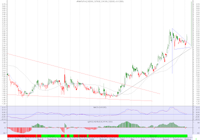 Po wybiciu się w kwietniu z trójkąta bessy akcje Armatury wyznaczyły dynamiczna falę wzrostową uwieńczoną utworzeniem historycznego szczytu pod koniec sierpnia. Tutaj nastąpiło miesięczne schłodzenie atmosfery. Korekta, która wystąpiła przybrała na wykresie kształt chorągiewki co w połączeniu z wcześniejszym wzrostowym trendem tworzy dogodną sytuację do dalszych wzrostów. I rzeczywiście środowe wybicie ponad ten miesięczny trójkąt zdaje się potwierdzać panujące na tym walorze bycze nastroje. Tym samym popyt stworzył sobie dogodną sytuację do bicia kolejnych rekordów cenowych. Brak sukcesów w ustanawianiu nowych maksimów oznaczać będzie że ceny będą wykreślać dłuższy w trend boczny. amatorgpw - Amator na giełdzie (GPW)