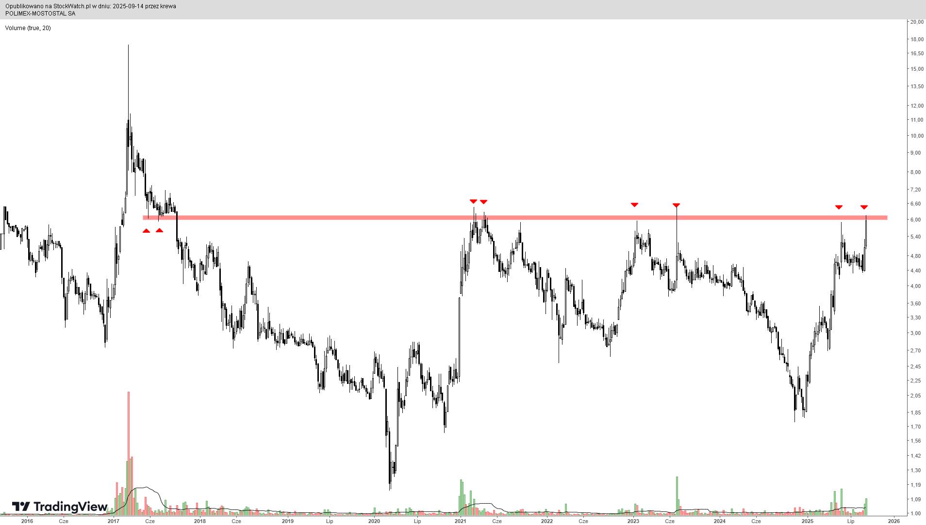 Walor nie tak dawno, bo w połowie kwietnia gościł już na warsztacie AT, ale jest powód do odświeżenia spojrzenia na wykres. Zgodnie z prognozą, wybicie oporu na poziomie 3,80 zł poskutkowało rozbudową zwyżki do kolejnego oporu na 4,60 zł. Ten również, po kilkutygodniowej konsolidacji, został złamany, co otworzyło drogę do kolejnego oporu na 6,20 zł (lepiej widoczne znaczenie tego poziomu w ujęciu tygodniowym).