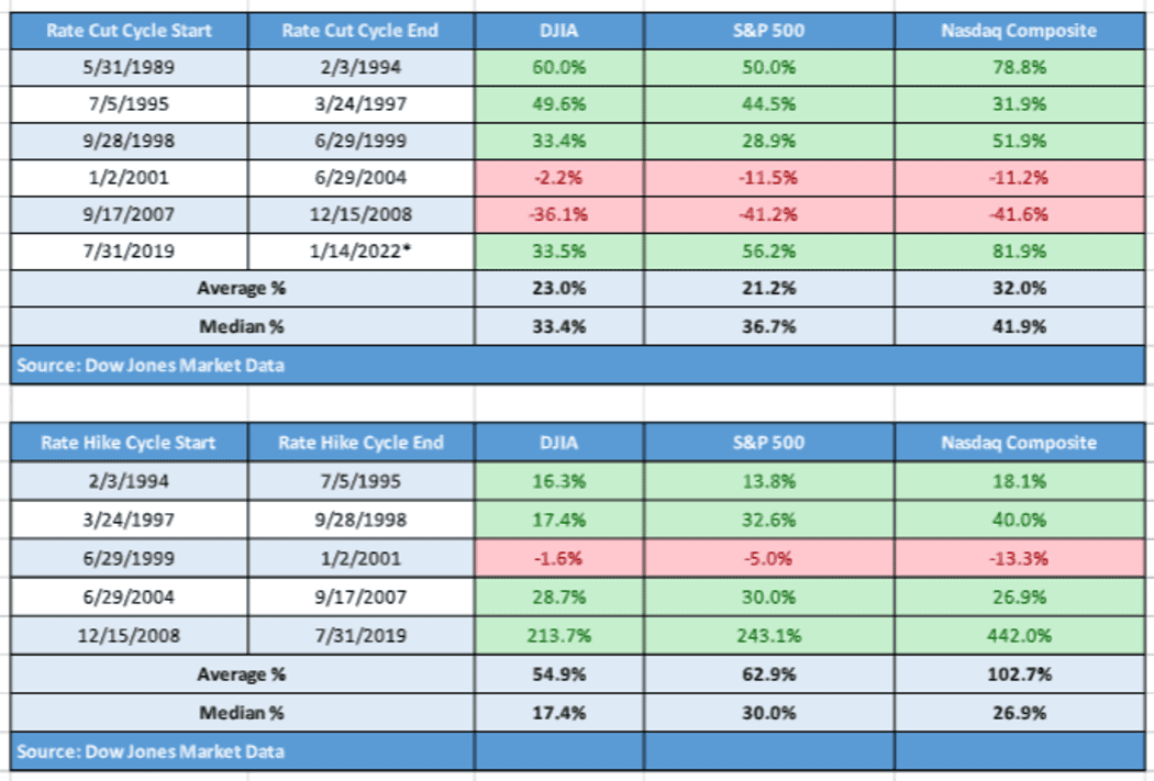 Fajne zestawienie w kontekście tego o czym piszesz Cytat:In fact, during a Fed rate-hike period the average return for the Dow Jones Industrial Average DJIA, -0.38% is nearly 55%, that of the S&P 500 SPX, -0.15% is a gain of 62.9% and the Nasdaq Composite COMP, +0.02% has averaged a positive return of 102.7%, according to Dow Jones, using data going back to 1989 (see attached table). Fed interest-rate cuts, perhaps unsurprisingly, also yield strong gains, with the Dow up 23%, the S&P 500 gaining 21% and the Nasdaq rising 32%, on average during a period of Fed rate cuts  kliknij, aby powiększyć www.marketwatch.com/story/here...