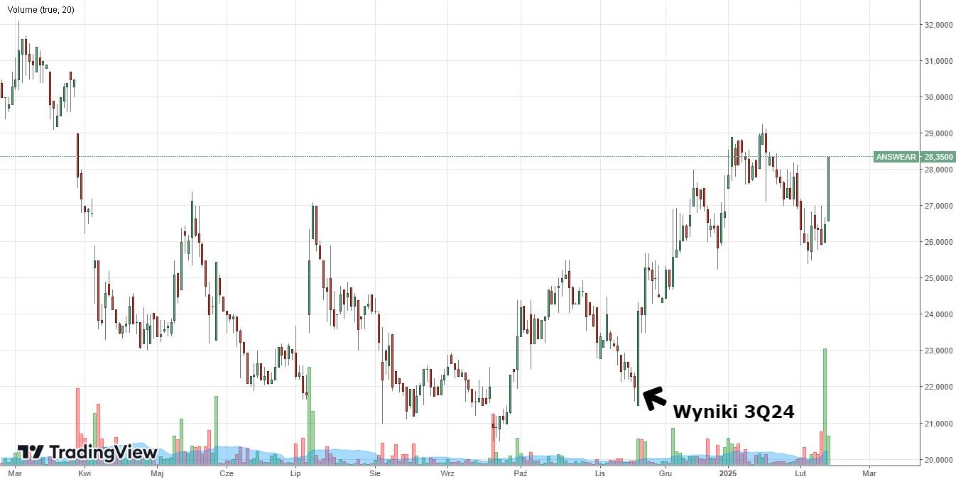 Listę faworytów BM mBanku zamyka Answear, czyli spółka, która mocno zaskoczyła przy okazji wyników za III kwartał. Według wstępnych danych sprzedażowych, przychody w IV kwartale wyniosły 526 mln zł. Analitycy liczą na poprawę marży brutto o 1 p.p. r/r, ponad 70-proc. wzrost wyniku EBITDA do 31 mln zł i 17 mln zł zysku netto.