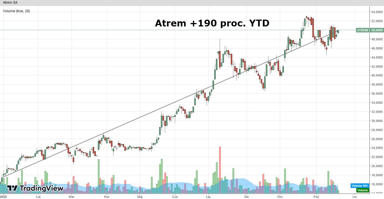 Kolejną nowością w gronie faworytów DM BOŚ jest Atrem. Akcje przemysłowej spółki tylko w tym roku podrożały o 190 proc. Tak mocny rajd na kursie giełdowego malucha ma swoje korzenie nowych kontraktach i dynamicznej poprawie wyników. Drugi kwartał br. nie był tu wyjątkiem i pozytywnie wpisał się w dotychczasowe trendy. W minionym okresie spółka zanotowała przychody ze sprzedaży na poziomie 59,6 mln zł, co oznacza wzrost o 44 proc. r/r. To najwyższy wynik kwartalny w historii spółki za okres kwiecień–czerwiec i drugi najlepszy w ogóle. Narastająco sprzedaż po półroczu sięgnęła 102 mln zł (+40 proc. r/r), a w ujęciu LTM przekroczyła 216 mln zł, co potwierdza trwałość trendu wzrostowego.