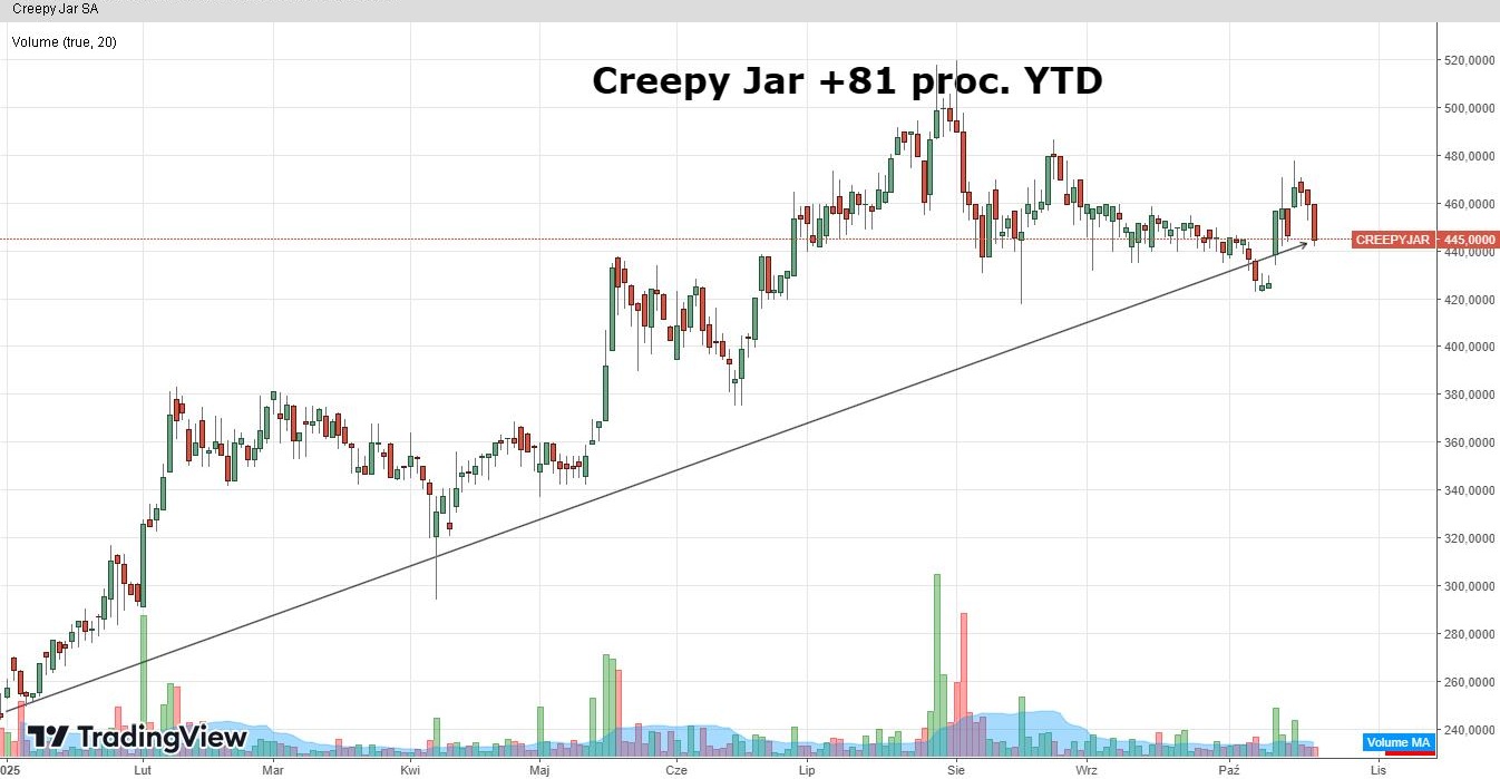 Na listę top picks DM BOŚ trafił Creepy Jar, czyli reprezentant sektora gamingowego, który szykuje się do ważnej premiery. 6 stycznia 2026 r. na rynek trafi StarRupture, czyli gra z segmentu premium indie, oferująca rozbudowaną symulację budowy bazy w środowisku sci-fi. Tytuł zadebiutuje w formule early access i już na starcie będzie posiadał tryb kooperacyjny. Dla spółki będzie ważny test, bo planowany budżet gry to ok. 41 mln zł. StarRupture będzie pierwszą dużą produkcją od czasu premiery przełomowego trybu co-op do Green Hella z 2020 r.