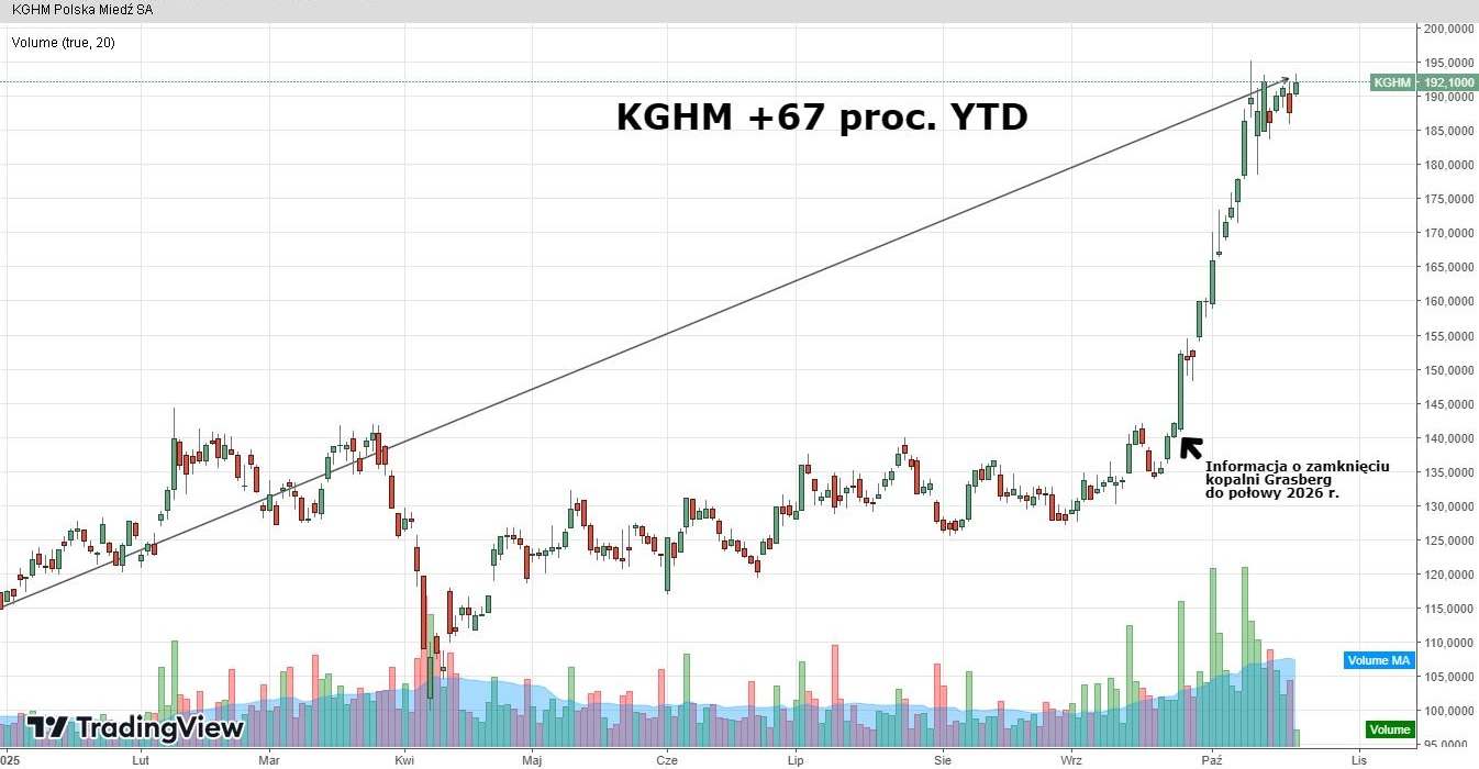 Przypomnijmy, we wrześniu rynkiem miedzi wstrząsnęła informacja o wypadku w indonezyjskiej kopalni Grasberg. W efekcie wstrzymano moce produkcyjne rzędu 400–500 tys. ton rocznie. Eksperci z uwagi na negatywne wydarzenia po stronie podaży zaktualizowali prognozy i obecnie spodziewają się deficytu surowca na poziomie 150 tys. ton w 2026 r.