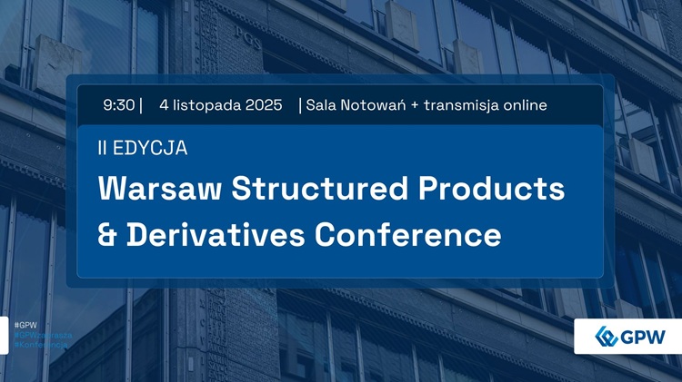 Giełda Papierów Wartościowych w Warszawie zaprasza inwestorów indywidualnych i instytucjonalnych na konferencję Warsaw Structured Products & Derivatives Conference, która odbędzie się 4 listopada 2025 r. (wtorek). To wyjątkowa okazja, by pogłębić wiedzę na temat bardziej zaawansowanych narzędzi inwestycyjnych, takich jak certyfikaty strukturyzowane, kontrakty terminowe i warranty.