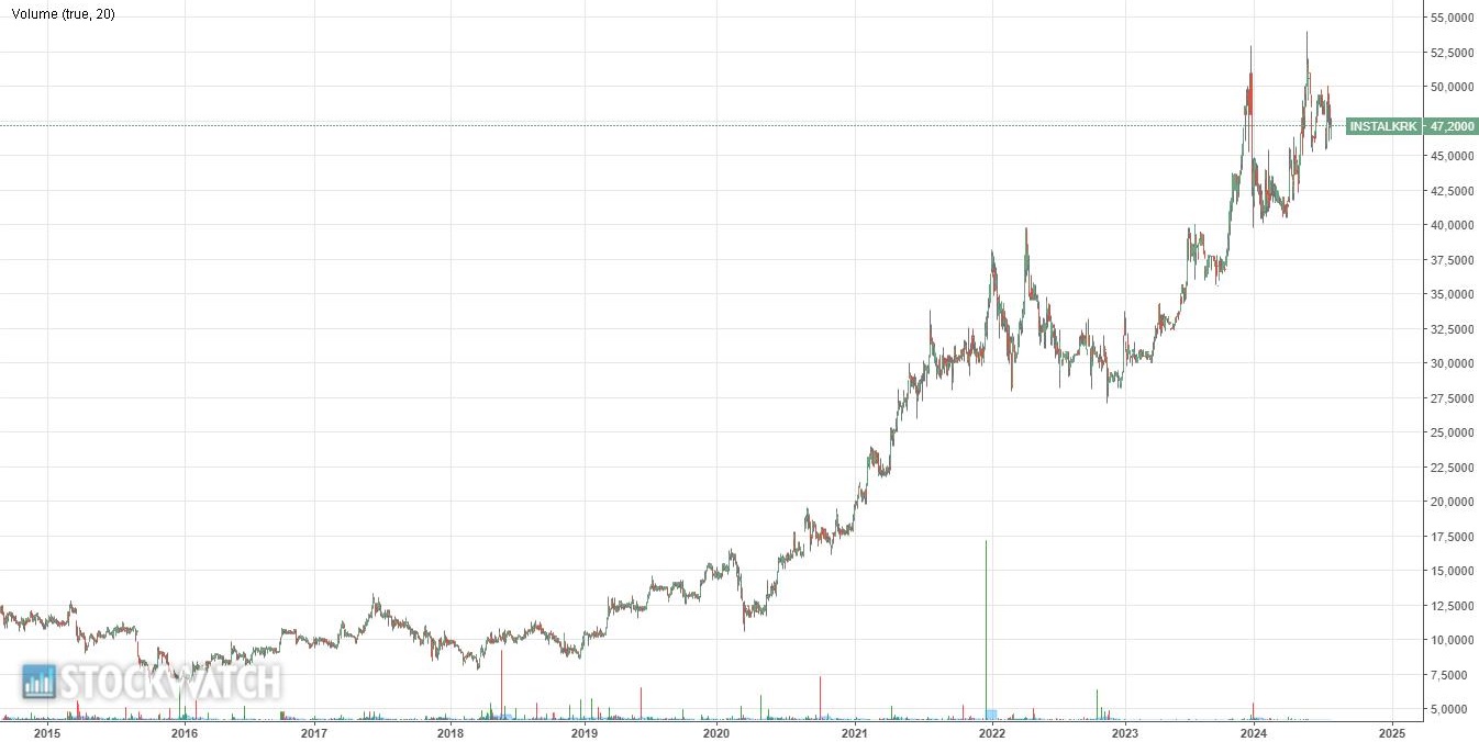 Wykres akcji Instalu Kraków. Kliknij, aby powiększyć