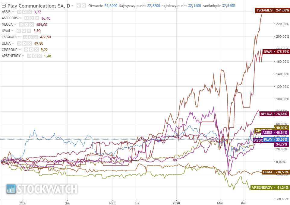 Play Communications będzie jedną z niewielu spółek z WIG20, które w tym roku podzielą się zyskiem z akcjonariuszami. Dotychczas jedynie Orlen przedstawił rekomendację wypłaty. Płocki koncern na ten cel chce przeznaczyć 1,28 mld zł. Już teraz wiadomo, że w tym roku dywidendy nie wypłacą banki i PZU. Plany dywidendowym krezusom pokrzyżował szef KNF, który z uwagi na skutki gospodarcze pandemii koronawirusa zalecił rezygnację z dywidendy. Ubiegłoroczne zyski zamierzają zatrzymać także spółki odzieżowe, energetyczne, surowcowe oraz handlowe z WIG20.