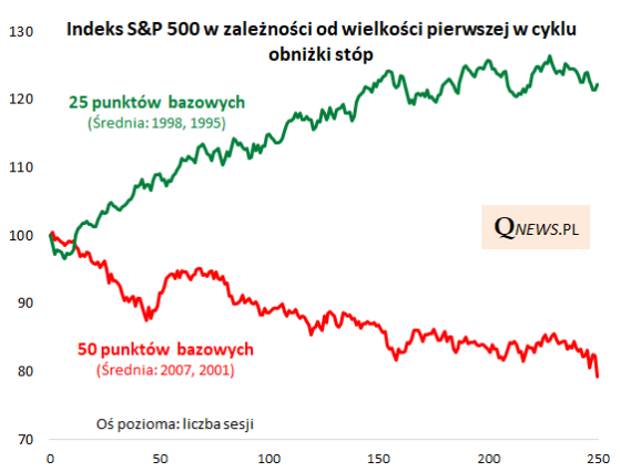 – Historycznie cięcie stóp na początku cyklu o 50 punktów – tak jak miało to miejsce w latach 2007 i 2001 – była dla Wall Street złowieszcza – zaznaczał analityk we wpisie na stronie QNews.pl.