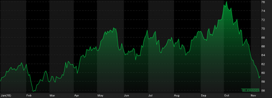 Notowania ropy Brent zeszły poniżej poziomu 70 USD za baryłkę, a cena ropy WTI nie przekracza już psychologicznej bariery na poziomie 60 USD za baryłkę. Dla obu gatunków ropy naftowej są to najniższe poziomy od kilku miesięcy.