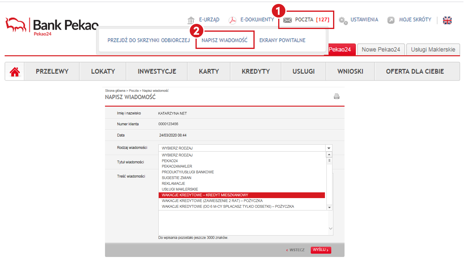 – Klienci bankowości detalicznej, którzy zamierzają skorzystać z odroczenia spłaty powinni zalogować się do serwisu transakcyjnego mBanku. Następnie wejść w zakładkę ‚moje finanse’, kliknąć w ‚kredyty’ i wybrać kredyt, którego spłatę chcą odroczyć. Należy wybrać opcję ‚złóż wniosek’, zaznaczyć ‚odroczenie spłaty kapitału’ i wpisać liczbę miesięcy (maksymalnie). Po kliknięciu ‚wyślij wniosek’ spłata kapitału kredytu zostaje automatycznie zawieszona. Cały proces jest przeprowadzany on-line, bez wychodzenia z domu – informuje mBank.