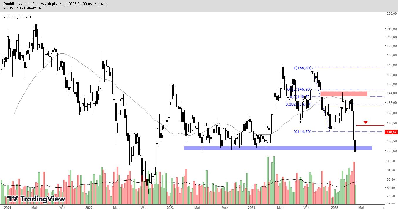 Wykres w interwale tygodniowym, żeby można było łatwiej porównać z poprzednią analizą techniczną z lutego. Jak wówczas pisałem, przeciąganie liny odbywało się w nieprzypadkowym miejscu i każda ze stron miała swoje asy w rękawie. Ostatecznie zwycięsko z potyczki wyszła podaż – notowania opuściły strefę konsolidacji dołem. Kupującym udało się jednak uratować wsparcie i wyciągnąć kurs akcji powyżej bezpiecznego poziomu. teraz kluczowym będzie zachowanie kursu akcji względem zaznaczonej na niebiesko strefy wsparcia i oporu w połowie korpusu długiej czarnej tygodniowej świecy, w okolicy 199 zł. To tam gracze zadecydują o średnioterminowych perspektywach waloru.