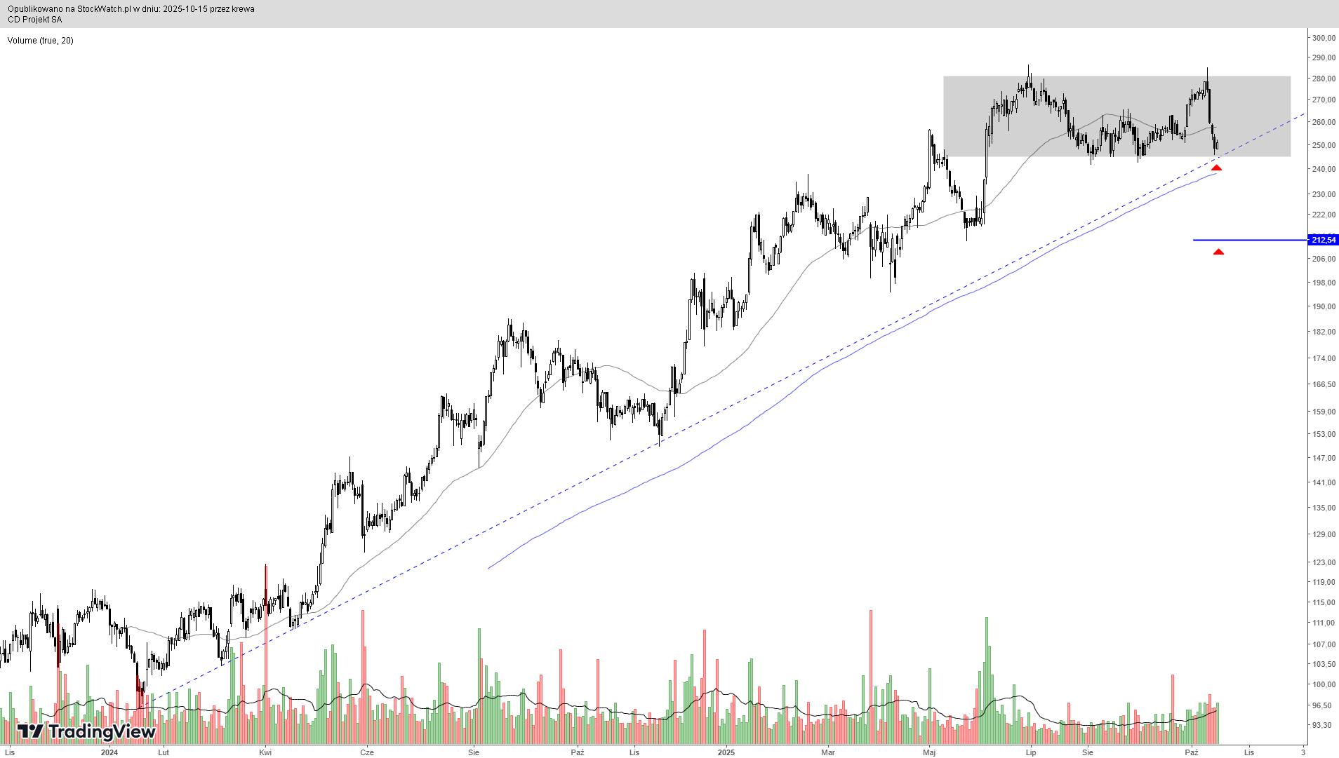 Czerwony październik na kursie CD Projektu. W ostatnich dniach notowania producenta gier spadły z okolic 285 zł do nawet 245 zł. Sprawdzamy co od strony technicznej oznacza ta korekta.