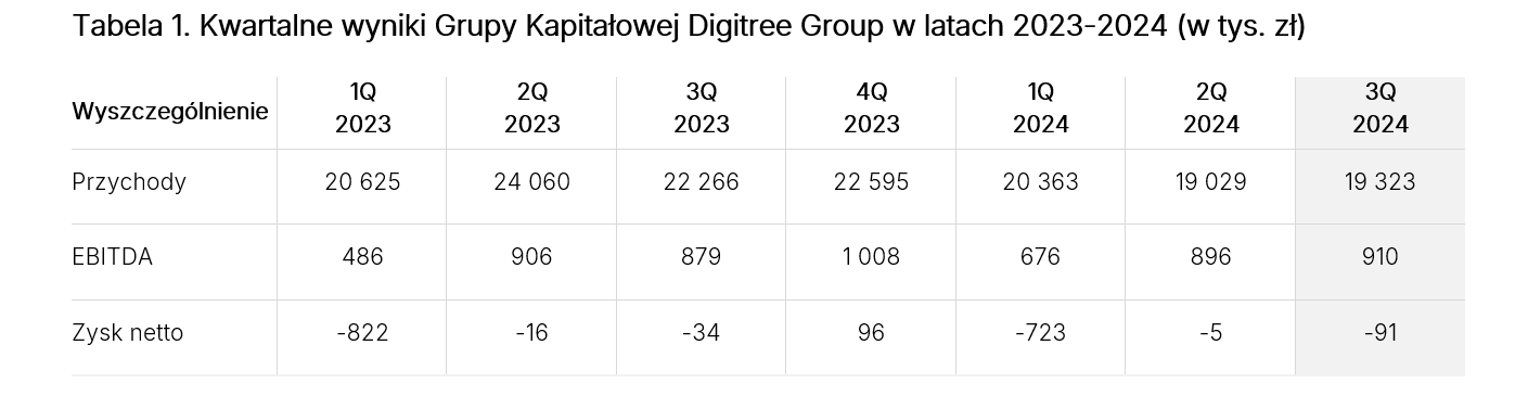 Wyniki finansowe Digitree Group. Źródło: Spółka