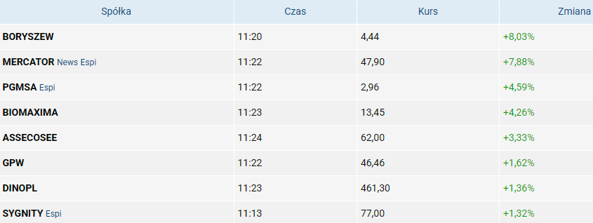 Inne wyróżniające się dziś spółki na GPW to m.in. PGMSA (+4,77 proc.), Asseco SEE (+3,33 proc.), BioMaxima (+2,33 proc.), Sunway Network (-11,15 proc.), Cognor (-4,62 proc.) i DataWalk (-3,29 proc.).