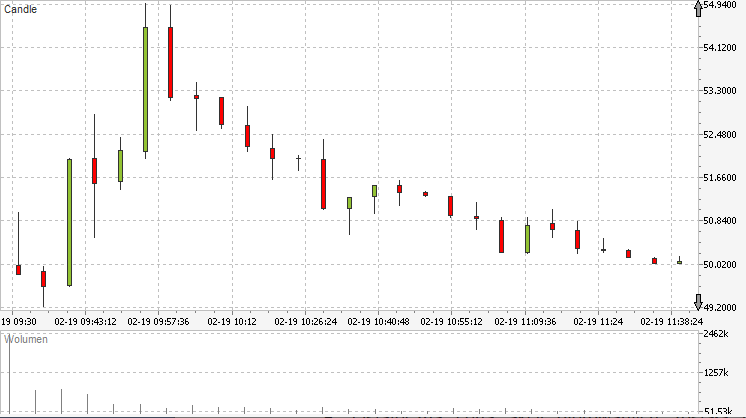 [9:31] Tylko przez krótką chwilę kurs akcji był powyżej 50 zł. W szczycie za jeden walor płacono 51 zł.