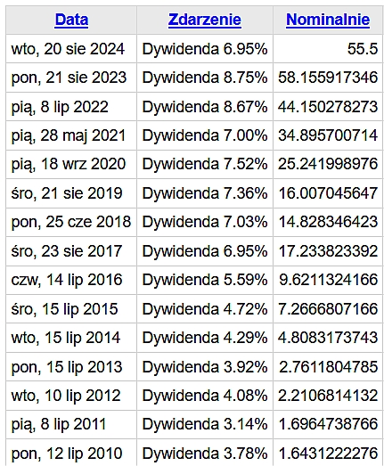 – Modelowy przykład rosnącej nominalnie wypłaty to Kęty. Dywidenda na akcje rosła od 2010 do 2023 roku, a w 2024 spadła tylko nieznacznie – zaznacza Kręcki.