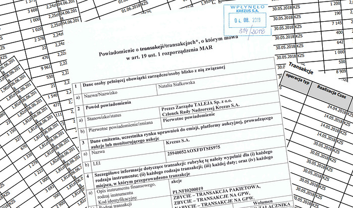 Pod koniec lutego ubiegłego roku Komisja Nadzoru Finansowego nałożyła na Taleja Sp. z o.o. karę pieniężną w wysokości 4,5 mln zł. Na tamten moment była to jedna z najwyższych kar w historii polskiego rynku kapitałowego. Urząd ustalił, że w okresie od kwietnia do października 2018 r. ówczesny główny akcjonariusz Krezusa dziewięciokrotnie nie przekazał w terminie spółce i KNF zawiadomienia o zmianie stanu posiadania akcji. Transakcji sprzedaży akcji było tak dużo, że „spóźniony załącznik” z wykazem operacji dokonanych na rynku liczył aż 100 stron.