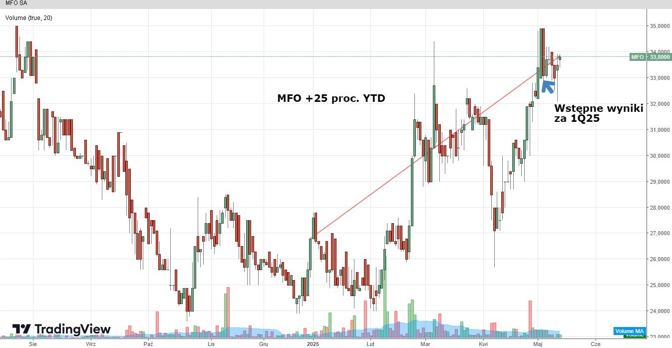 Od początku 2025 r. akcje MFO podrożały o 25 proc., co jest solidnym wynikiem na tle rynku. Trzeba jednak pamiętać, że druga połowa 2024 r. stała pod znakiem korekty, która sprowadziła cenę akcji w okolice 24 zł, czyli najniższego poziomu od grudnia 2020 r. Co będzie dalej z kursem?