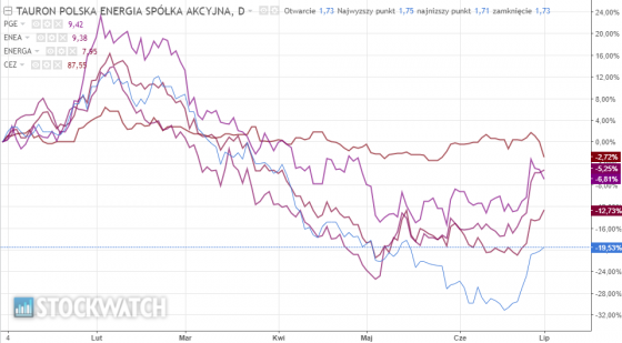 Patrząc na polską branżę energetyczną przez pryzmat notowań akcji poszczególnych spółek można stwierdzić, że mamy do czynienia z głębokim kryzysem. Kurs akcji PGE, czyli największego koncernu energetycznego w kraju, w maju trzykrotnie bronił się przed ustanowieniem nowego historycznego dołka. Podobnie Enea, której kurs w czerwcu był o włos od testu ubiegłorocznego i jednocześnie historycznego minimum na 7,27 zł. W niewiele lepszej sytuacji są akcjonariusze Energi. Kurs akcji gdańskiej spółki co prawda przełamał ubiegłoroczne wsparcie (minimum z września), ale ostatecznie nie pokusił się o test historycznego minimum z listopada 2016 r. Tyle „szczęścia” nie mieli natomiast akcjonariusze Taurona. Za jedną akcję tej spółki w czerwcowym dołku płacono zaledwie 1,47 zł, co dawało wycenę całej grupy na poziomie 2,5 mld zł. A mowa tu o firmie, która zaopatruje w prąd 5,6 mln osób i w ubiegłym roku wygenerowała ponad 18 mld zł przychodów ze sprzedaży, 200 mln zł zysku netto i 790 mln zł zysku EBIT.
