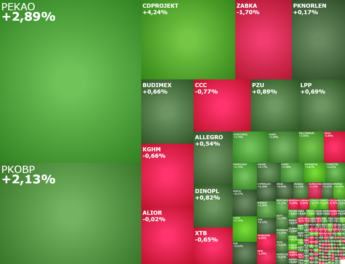 Mocny sektor bankowy i gamingowy, na fali Pekao, PKO BP i CD Projekt