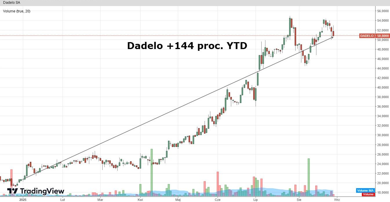 – Spółka jest bardzo zadowolona z działania swoich sklepów fizycznych (ma ich 4 po 2 otwarciach w 2025, do końca roku planuje jeszcze jedno otwarcie). Również Dadelo obecnie widzi swoje szanse na zbudowanie atrakcyjnie wycenionego zapasu. Tempo wzrostu przewyższyło nasze oczekiwania. Podwyższamy ścieżkę wyników dla Dadelo – czytamy w raporcie BM PKO BP z 28 sierpnia.