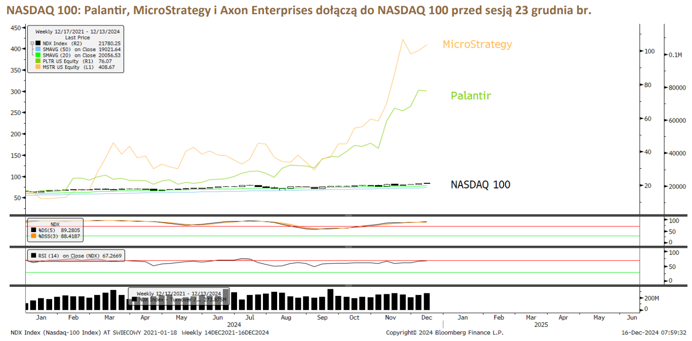 Zmiany w składzie Nasdaq 100 zawsze budzą duże zainteresowanie inwestorów. Do prestiżowego indeksu 23 grudnia dołączą trzy nowe spółki: Palantir Technologies, MicroStrategy oraz Axon Enterprises. Zastąpią one Modernę, Super Micro Computer i Illuminę.
