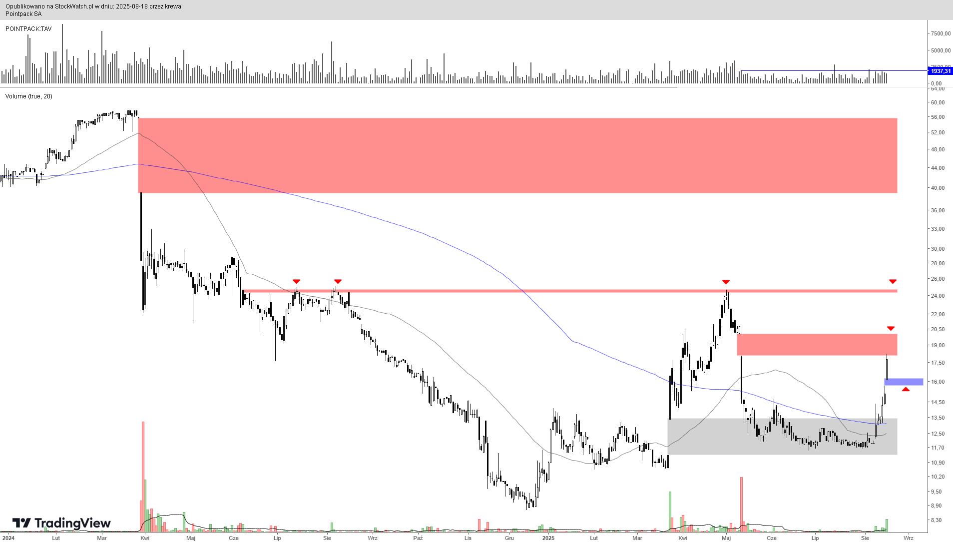 Reasumując - widać stopniową poprawę sentymentu. Wskaźniki techniczne aktualnie są po jasnej stronie mocy, SMA50 zdaje się zawracać na północ. Zagrożenie to podaż kryjąca się w obszarach cenowych zaznaczonych na czerwono. Najbliższe wsparcie znajduje się w strefie dzisiejszej luki wzrostowej.