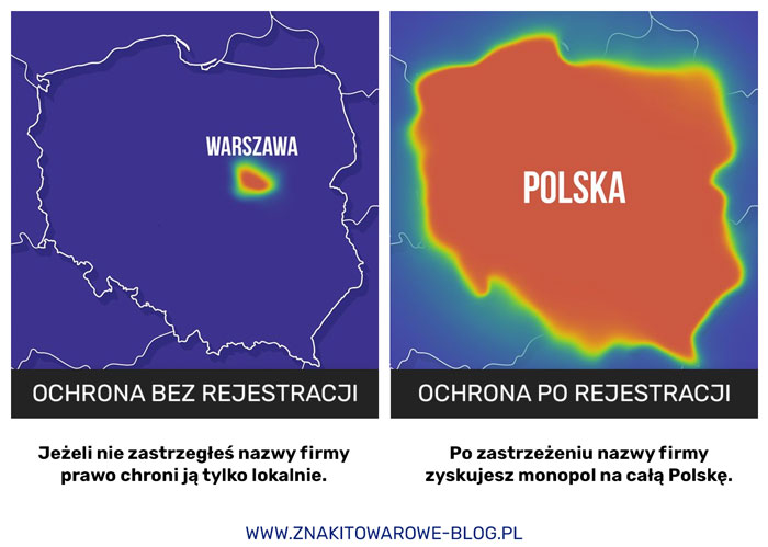 Skoro informacji o tych prawach nigdzie się nie odnotowuje, to musisz wykazać, że jednak Cię chronią. Dowodów na swoją działalność powinieneś mieć setki. A i to może nie wystarczyć do wykazania wyłączności do nazwy na terenie całego kraju. Finalnie wysiłek związany z postępowaniem dowodowym najczęściej oznacza wielokrotnie większe koszty, niż opłata za rejestrację znaku towarowego. A takie formalne zgłoszenie daje Ci monopol równy na całą Polskę.