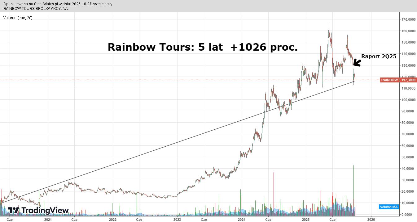 – Mimo powyższych niepewności trzeba jednak jasno stwierdzić, iż Rainbow Tours jest na razie zdrowym biznesem o bardzo stabilnych fundamentach. Żadna spółka nie jest w stanie rosnąć w tempie dwucyfrowym w nieskończoność – sygnalizował analityk StockWatch.pl w lipcowej analizie spółki.