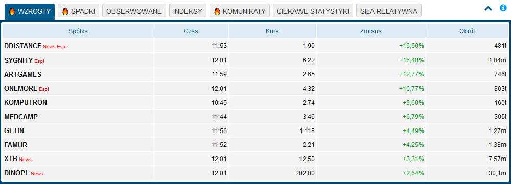 Gorące wzrosty na GPW. Kliknij, aby powiększyć.