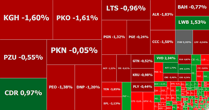 Mając na uwadze powyższe czynniki należy uznać, że dzisiejszą sesję na GPW byki już przegrały. Szansa na zmianę nastrojów jest niewielka.