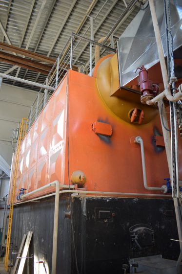 Jeden z pieców wytwarzających sprężoną parę, opalany odpadami z produkcji oleju.