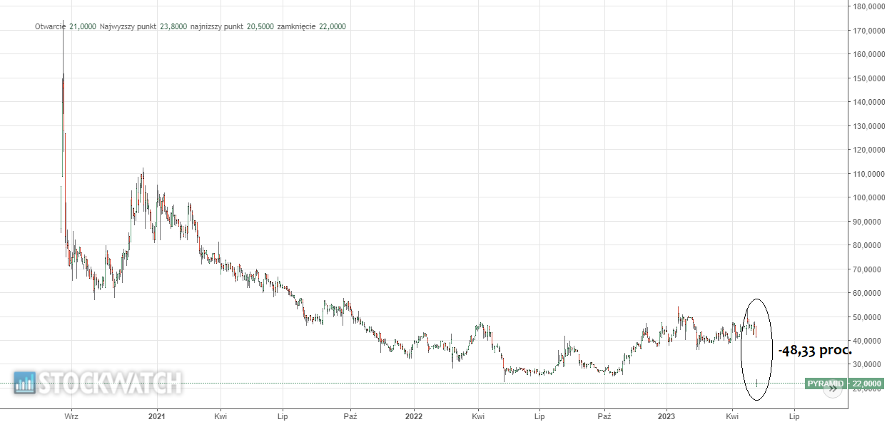 Długo oczekiwana gra „Occupy Mars: The Game” nie spełniła oczekiwań inwestorów i wywołała paniczną przecenę Pyramid Games. W czwartek zleceń sprzedaży akcji było tak dużo, że handel wystartował dopiero ok. 9:40. Pierwsze transakcje zawarto po kursie 21 zł, czyli 49,7 proc. niższym niż środowe zamknięcie. Warto odnotować, że w dniu premiery akcje studia straciły ponad 9 proc.