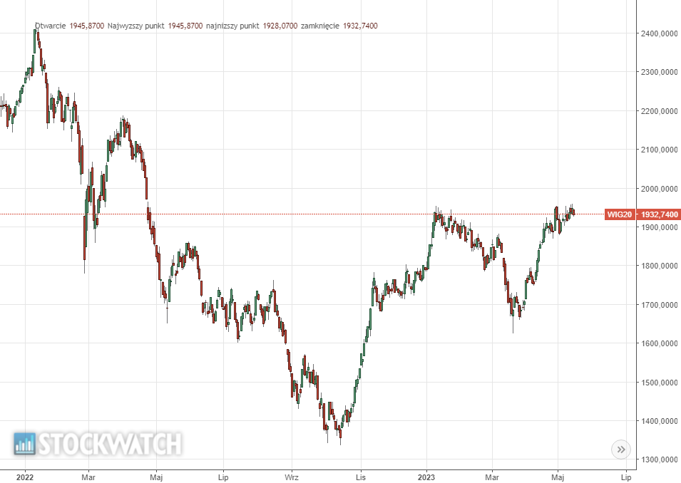 Środowa sesja trochę przypomina pogodę za oknem. Owszem jest pochmurno, dużo zimniej niż wczoraj i jeszcze do tego pada, ale to nie powinno przysłaniać ogólnej całości, że mamy w Polsce wiosnę. Na giełdzie też taką wiosnę mamy. Poprawa perspektyw dla wzrostu gospodarczego, wyborcze pobudzenie konsumpcji przez rząd, lepszy sentyment do polskich aktywów (co wyraźnie pokazuje złoty), ale przede wszystkim bliski koniec podwyżek stóp procentowych przez największe banki centralne (Fed już zakończył cykl) i nadzieje na ich przyszłe obniżki, każą z optymizmem spojrzeć na akcje. Jeżeli dodatkowo nałożyłoby się na to jakieś rozstrzygnięcie w tym roku ws. wojny w Ukrainie, na który to scenariusz wskazują analitycy wojskowi i polityczni, to byłby to dodatkowy impuls dla polskiego rynku akcji.