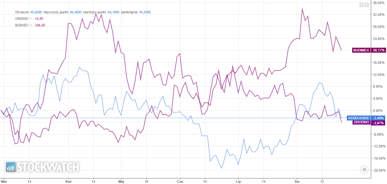 Z listy top picks wypadły akcje Asseco SEE, Grodna i Budimeksu. Tu powody są różne. W wypadku pierwszej spółki pretekstem był wzrost kursu akcji z okolic 40 zł do ponad 49 zł w ciągu zaledwie miesiąca. Dodatkowo eksperci obniżyli krótkoterminową rekomendację relatywną (do rynku) dla akcji Asseco SEE z przeważaj do neutralnie. O rezygnacji z Grodna przesądziła wysoko zawieszona poprzeczka w postaci przychodów z okresu bazowego, a w Budimeksie – ryzyko braku środków z KPO.
